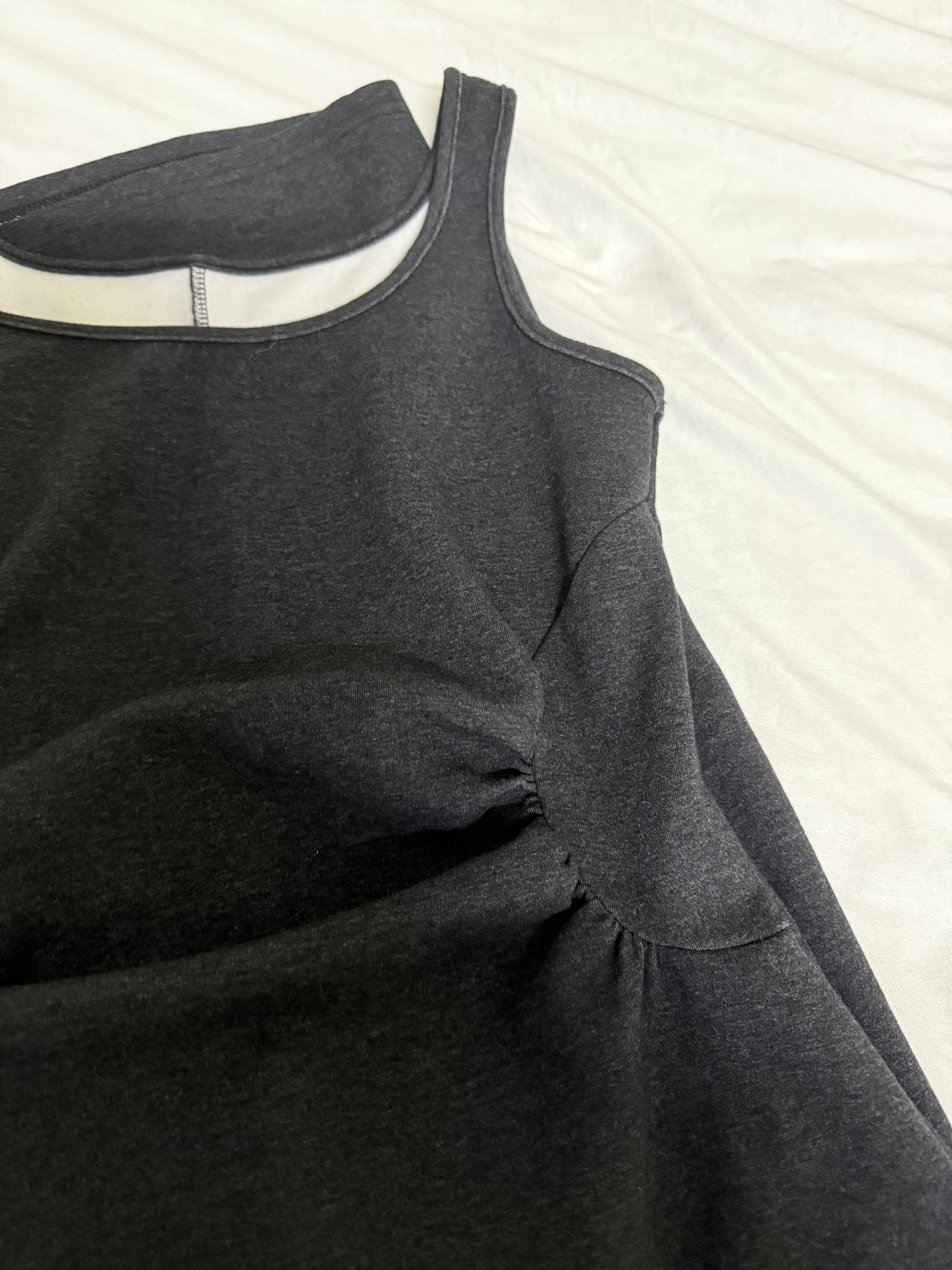Description: This dress features a minimalist, modern design that can be worn on its own to highlight the waistline or paired with a jacket to enhance both height and overall silhouette.